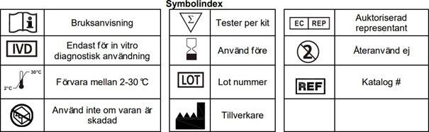 - När foliepåsen öppnats skall testet användas direkt. Långvarig exponering för luftfuktighet leder till att produktens pålitlighet försämras.